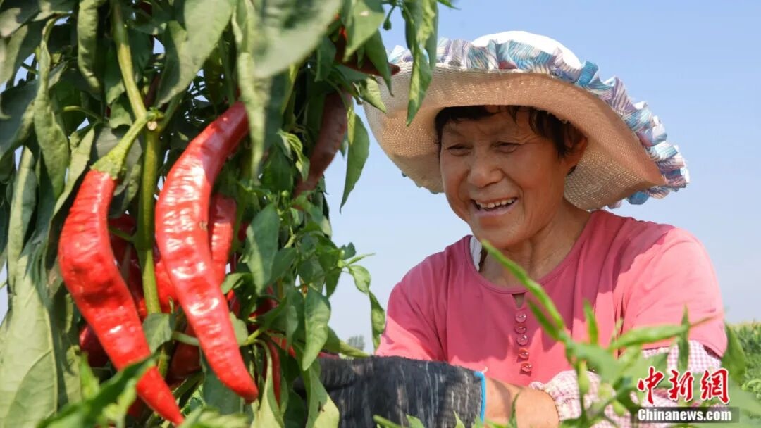冀南平原上,連片的辣椒田如紅色海洋翻涌——細(xì)長的羊角椒緊緊扒著枝頭蕩來蕩去,油亮的皮膚曬得通紅。