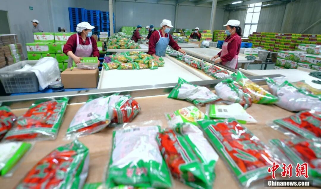 雞澤縣湘君府味業(yè)有限責(zé)任公司工人正在將辣椒成品進(jìn)行裝箱。中共雞澤縣委宣傳部供圖