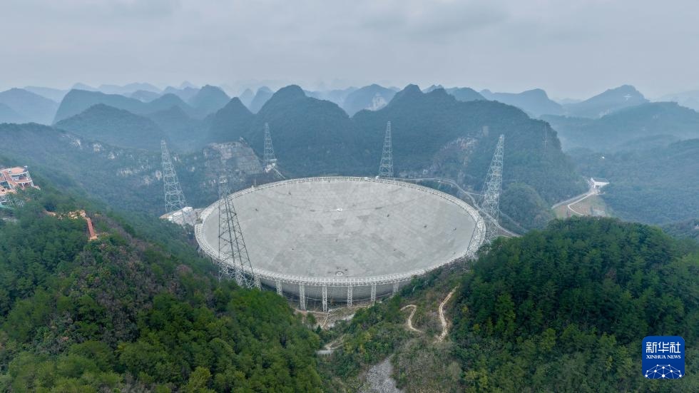 1月16日拍攝的“中國天眼”(無人機全景照片,維護保養(yǎng)期間拍攝)。