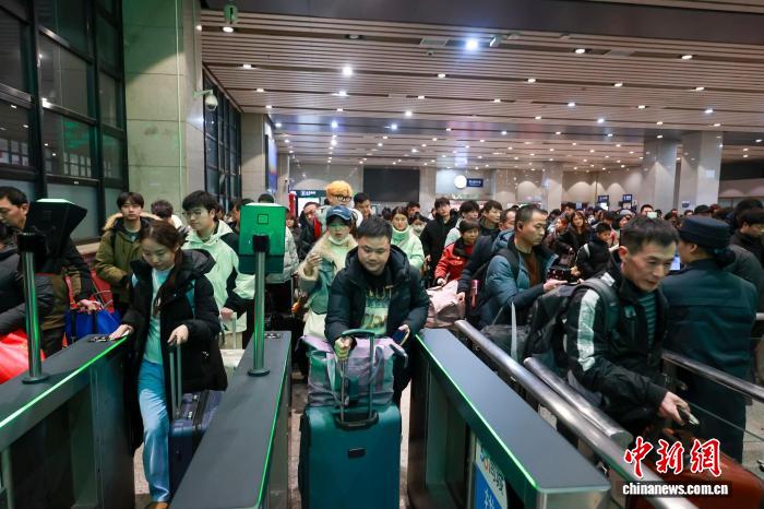 2月2日,乘客在北京西站排隊進(jìn)站乘車。中新社記者 賈天勇 攝