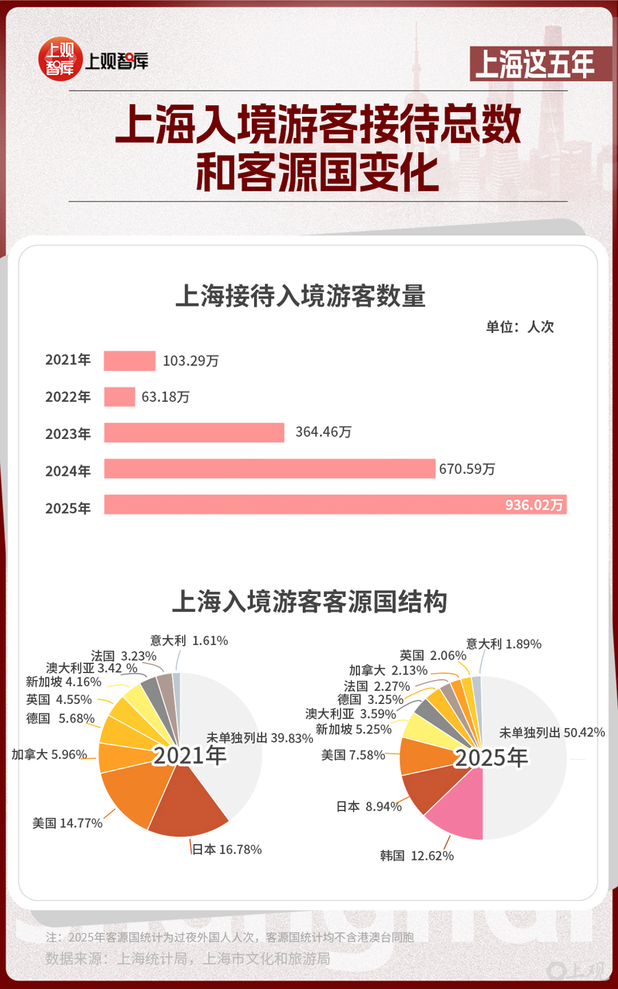 開放的上海,在全球的魅力日益提升。乘著免簽政策東風(fēng),上海在入境游賽道走出強(qiáng)勁上升曲線,“中國入境游第一站”吸引力持續(xù)攀升。去年全年,上海接待入境游客總量936.02萬人次,創(chuàng)下歷史新高,成為全球游客感知中國文化、體驗(yàn)都市魅力的首選目的地。
