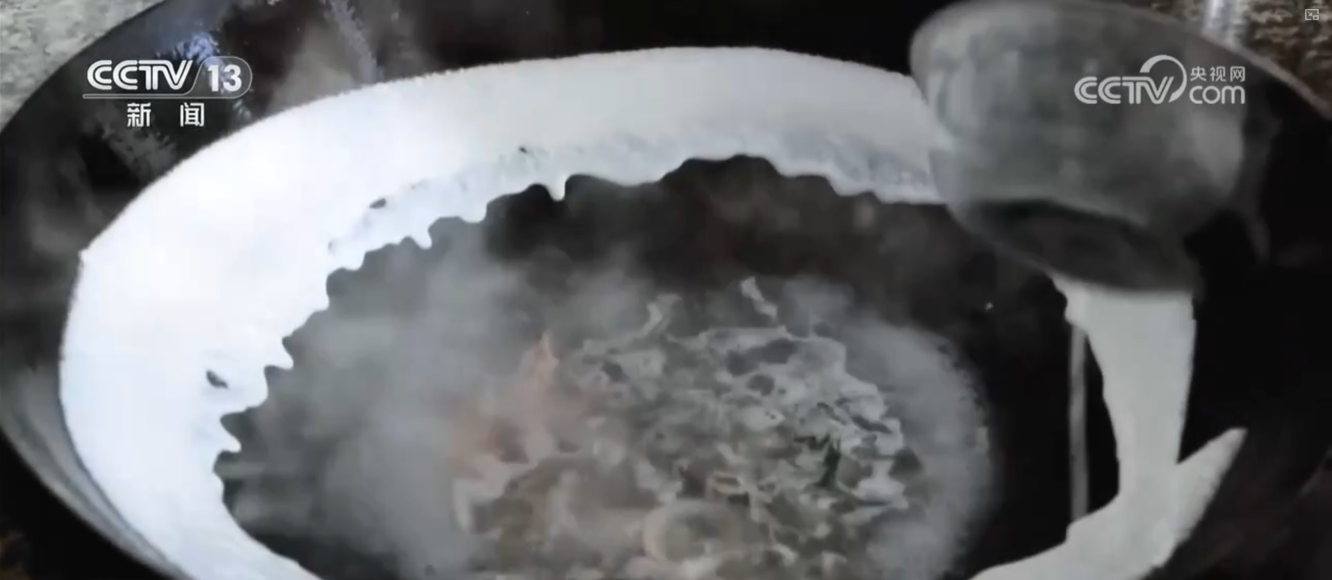 鍋邊的制作并不復雜,以高湯為底,加入蝦米、紫菜、干貝、香菇、蟶干、魚干等食材共同熬煮。之所以叫“鍋邊”,是因為制作時,要把大米磨成的米漿沿著燒熱的鍋的邊緣順時針澆上一圈。而作為鍋邊的“靈魂”,米漿的制作可有大講究。