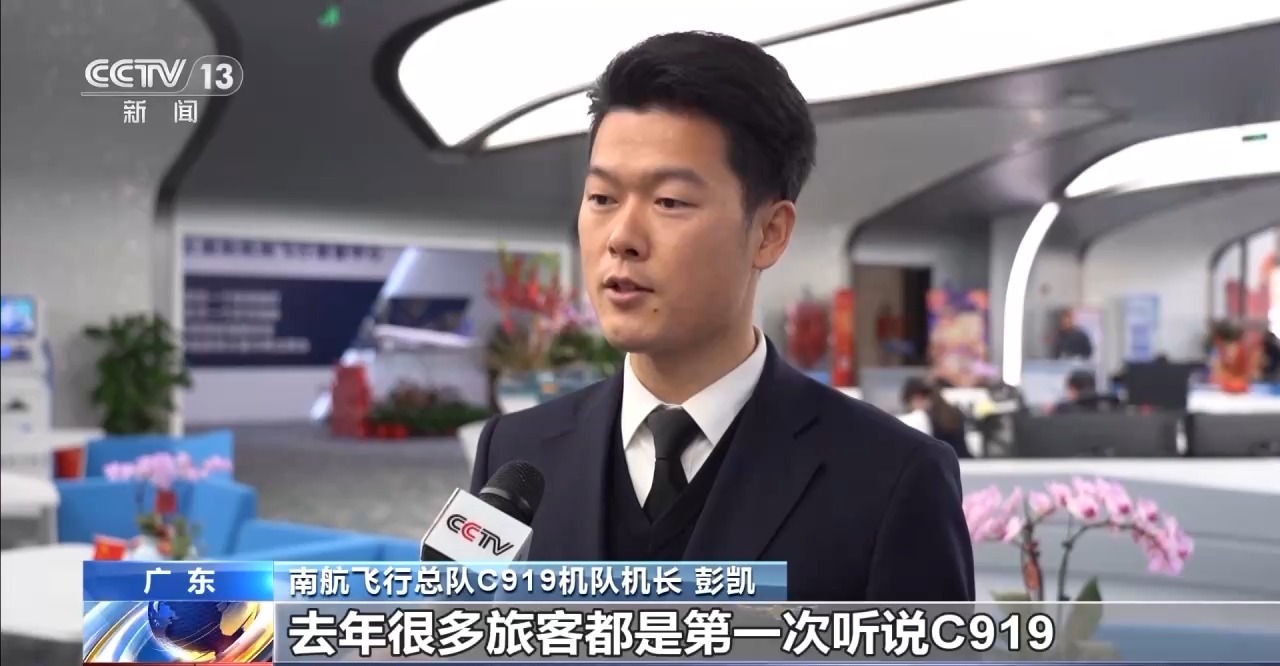 南航飛行總隊C919機隊機長 彭凱:去年很多旅客都是第一次聽說C919,今年可能有些不一樣,很多旅客已經(jīng)主動選乘去拍照打卡這個機型了。