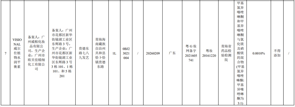 根據(jù)通告,在2023年國家化妝品抽樣檢驗工作中,經(jīng)上海市食品藥品檢驗研究院等單位檢驗,產(chǎn)品標簽標示委托方為溫州市鈺啟化妝品有限公司、受托生產(chǎn)企業(yè)為金華市纖爍化妝品有限公司生產(chǎn)的幻臻水性彩色指甲油HZ088等7批次化妝品不符合規(guī)定,檢出《化妝品安全技術(shù)規(guī)范(2015年版)》中規(guī)定的禁用原料。