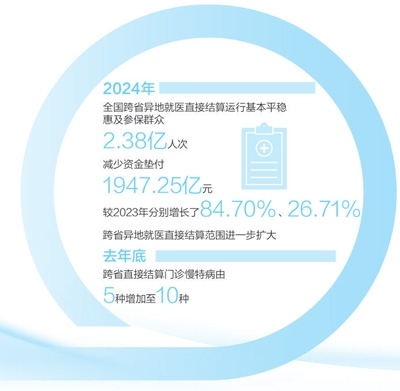 2024年,全國跨省異地就醫(yī)直接結算惠及參保群眾2.38億人次,成績來之不易。我國跨省流動人口數(shù)量大,如何更好滿足人民群眾的異地就醫(yī)需求,是一道必答題。近年來,各地各部門著力打通異地就醫(yī)的難點堵點,推出一系列實實在在的舉措,覆蓋范圍不斷擴大、慢特病病種進一步擴圍、經(jīng)辦服務持續(xù)優(yōu)化,人民群眾的獲得感不斷增強,笑容更多、心里更暖。