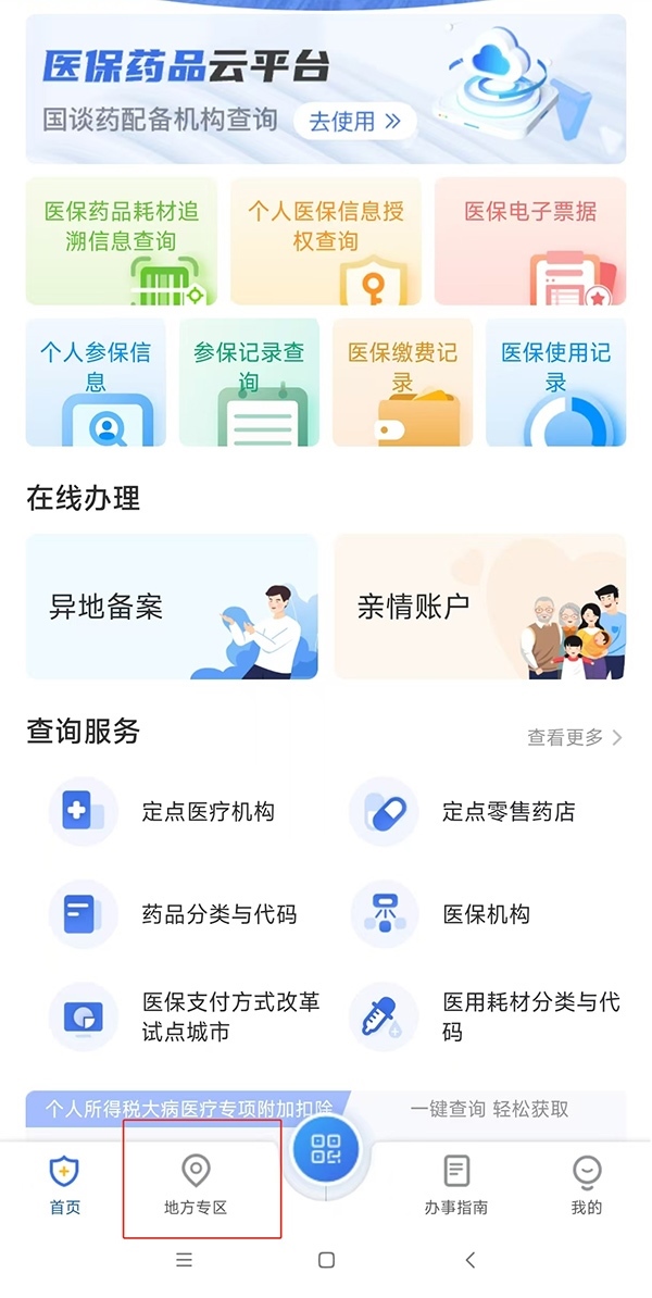 第一步:以北京為例,打開“國家醫(yī)保服務(wù)平臺”App,點(diǎn)擊進(jìn)入下方“地方專區(qū)”,選擇“北京市”。