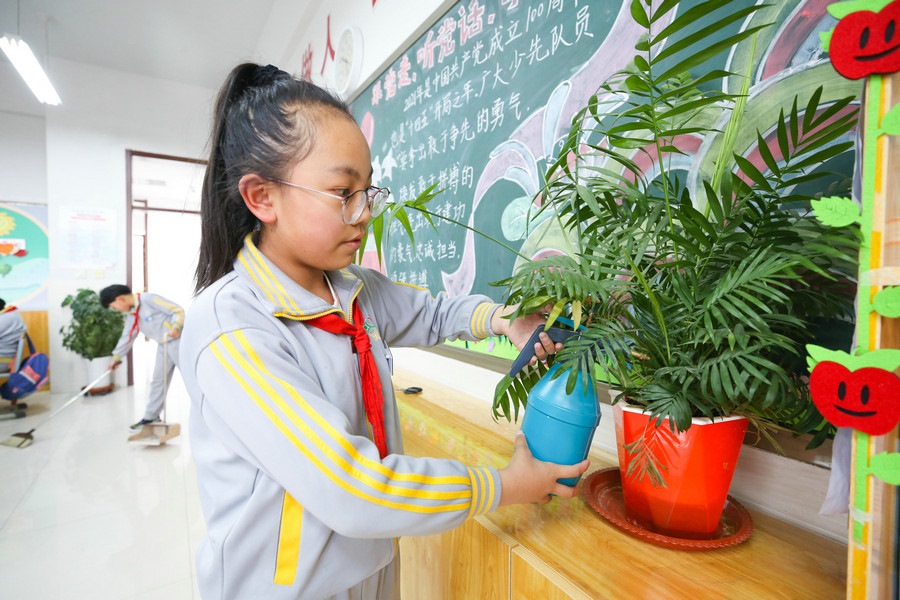 依托班級“人人有事做,事事有人管”的勞動理念,康巴什區(qū)第二小學每個班都設置了諸如“護花小使者”、“節(jié)能小衛(wèi)士”“圖書管理員”等崗位,學生自愿申請成為崗位負責人,陳海葉就是其中之一。