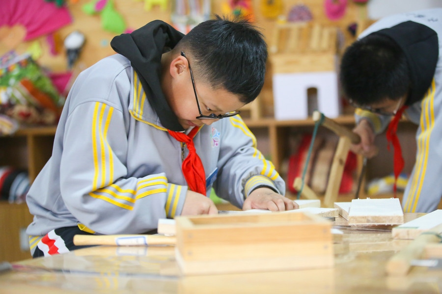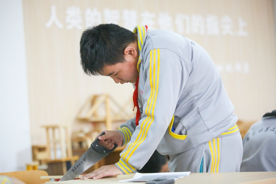 “今日課程學習的是水果拼盤和可樂雞翅。”跟隨勺鏟翻動,添上各種調料,一個個身著圍裙的學生們正在老師的指導下忙的不亦樂乎。從擇菜、烹飪到清洗廚具,一個個學生儼然已經成為“小廚師”。從三年級開始,學校還開展了陶藝、木工、科技制作等活動,找準學生的興趣點,學校有趣的勞動技能活動吸引了學生的眼球。