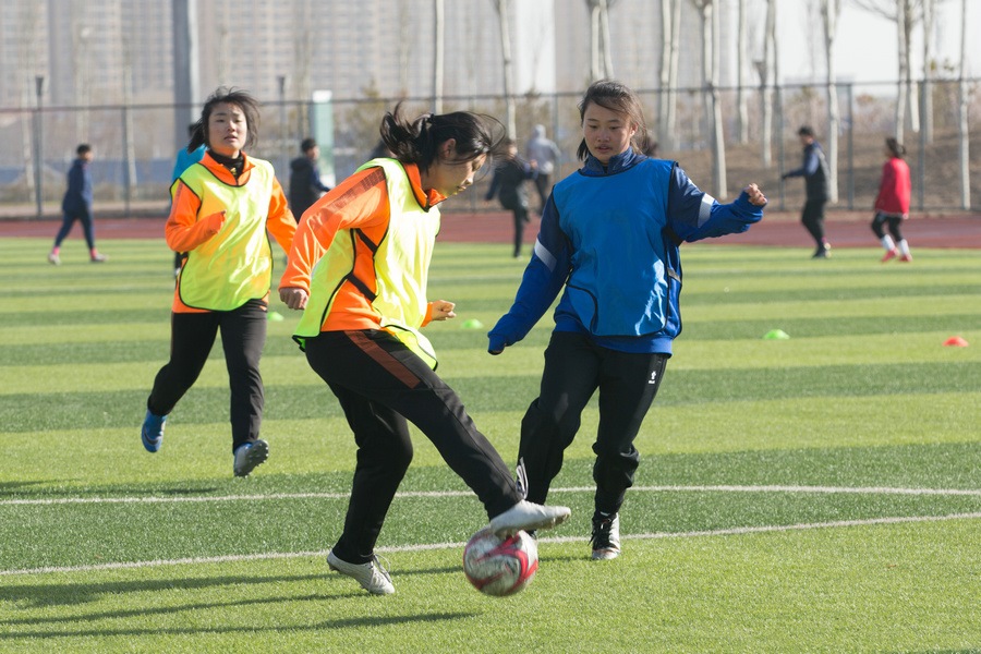 內(nèi)蒙古中學(xué)生女子足球隊員選拔現(xiàn)場