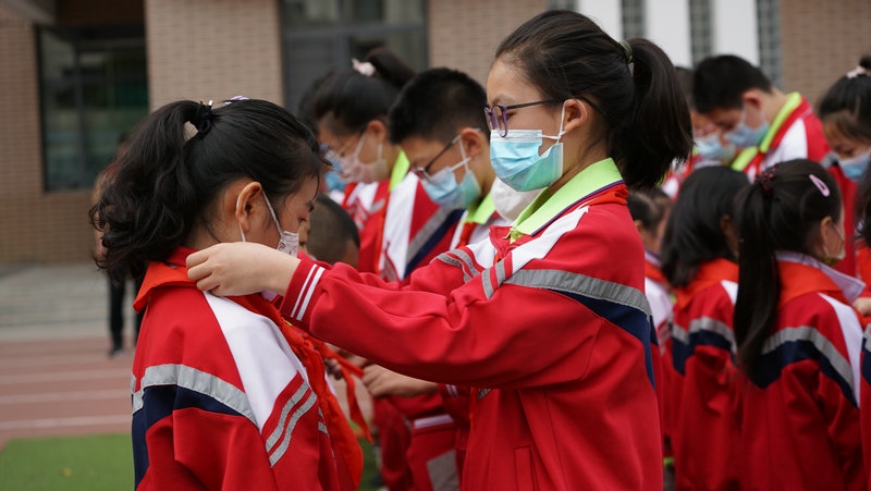 新城區(qū)北垣小學(xué)舉行一年級新生分批入隊儀式。新隊員們戴上紅領(lǐng)巾,走在陽光下,熠熠生輝。學(xué)校利用好“六一”這個重要時間節(jié)點,開展入隊儀式、“紅領(lǐng)巾獎?wù)隆鳖C章儀式等,用好儀式教育,構(gòu)建階梯式成長激勵體系,不斷增強少先隊員的光榮感。