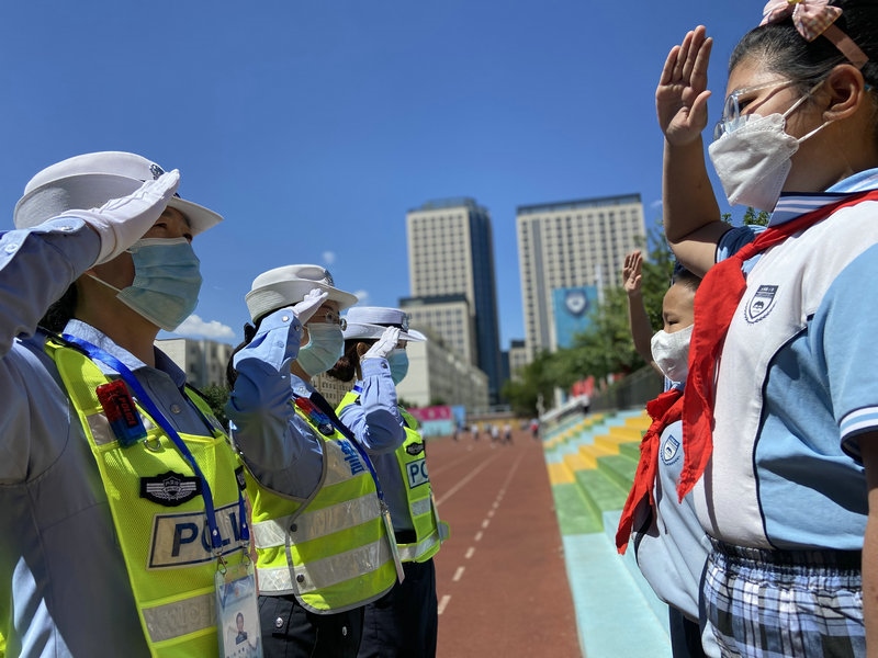 為進(jìn)一步向轄區(qū)內(nèi)小學(xué)生普及交通安全知識,呼和浩特市公安局交通管理支隊賽罕大隊女警護(hù)學(xué)中隊民輔警走進(jìn)校園,開展“交通安全小課堂”的安全教育活動,通過PPT講解、播放交通事故案例、互動問答、戶外游戲等多種形式,為小朋友們送去了一份交通安全知識的”六一“禮物。