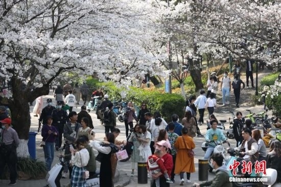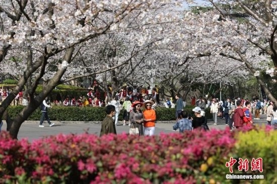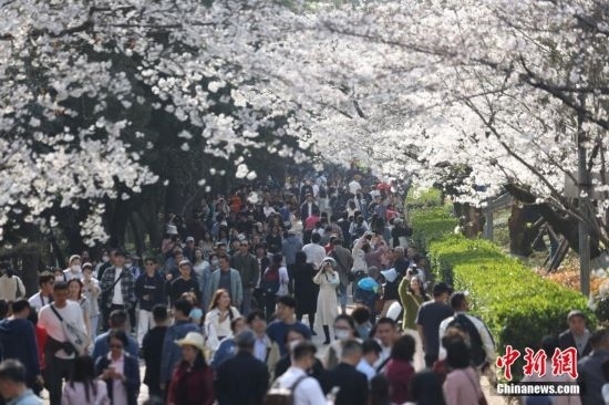 3月15日,武漢大學(xué)賞櫻預(yù)約首日,櫻花大道、鯤鵬廣場附近人潮涌動。今年櫻花開放期間,武漢大學(xué)延續(xù)“實名限額、網(wǎng)絡(luò)預(yù)約、雙重核驗”做法,面向社會公眾實行免費預(yù)約賞櫻制,工作日每天預(yù)約限額1.5萬人,周末每天預(yù)約限額3萬人。此外,還將于3月18日舉辦醫(yī)護賞櫻專場,邀請援鄂醫(yī)療隊及湖北省內(nèi)抗疫醫(yī)護人員來校賞櫻,并在弘毅門(原西門)舉行歡迎儀式。 趙軍 攝