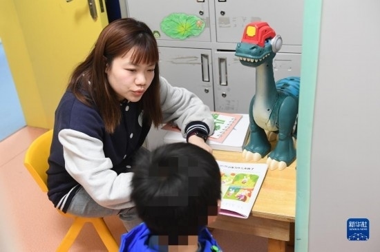 3月29日,一名老師在給自閉癥兒童做一對一訓(xùn)練。