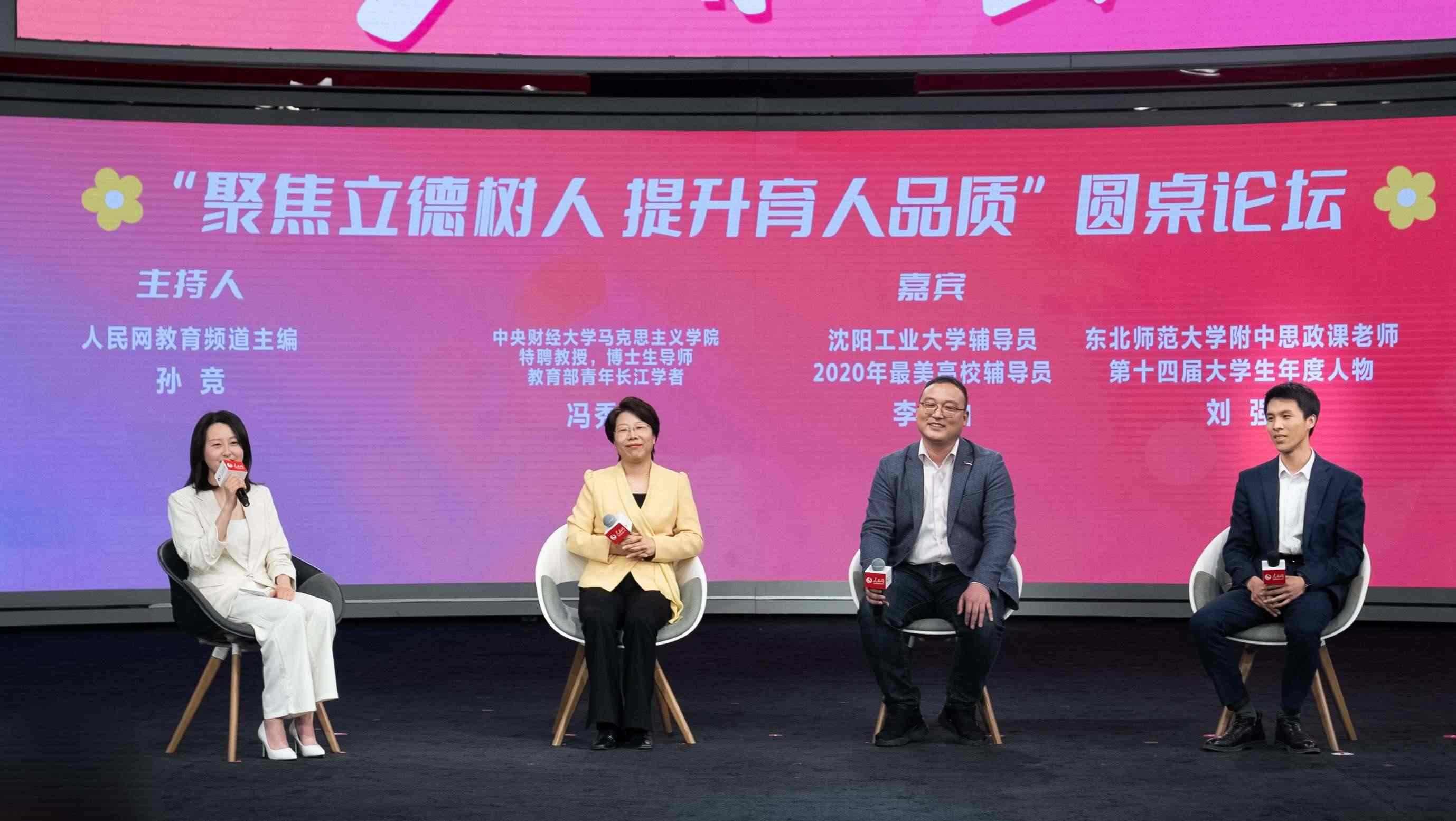在“聚焦立德樹人,提升育人品質(zhì)”思政圓桌環(huán)節(jié)上,人民網(wǎng)教育頻道主編孫競與多位教育一線思政老師展開對話。中央財經(jīng)大學(xué)馬克思主義學(xué)院特聘教授、博士生導(dǎo)師、教育部青年長江學(xué)者馮秀軍表示,“一百多年前那個時代的青年,用青春和熱血為我們打造出了今天這樣一個中國青年可以平視世界的新天地。我們這片熱土,蘊(yùn)含了無限的力量和希望,希望同學(xué)們投身實踐,尋找到我們的使命,從而獲得青春奮進(jìn)的力量。”