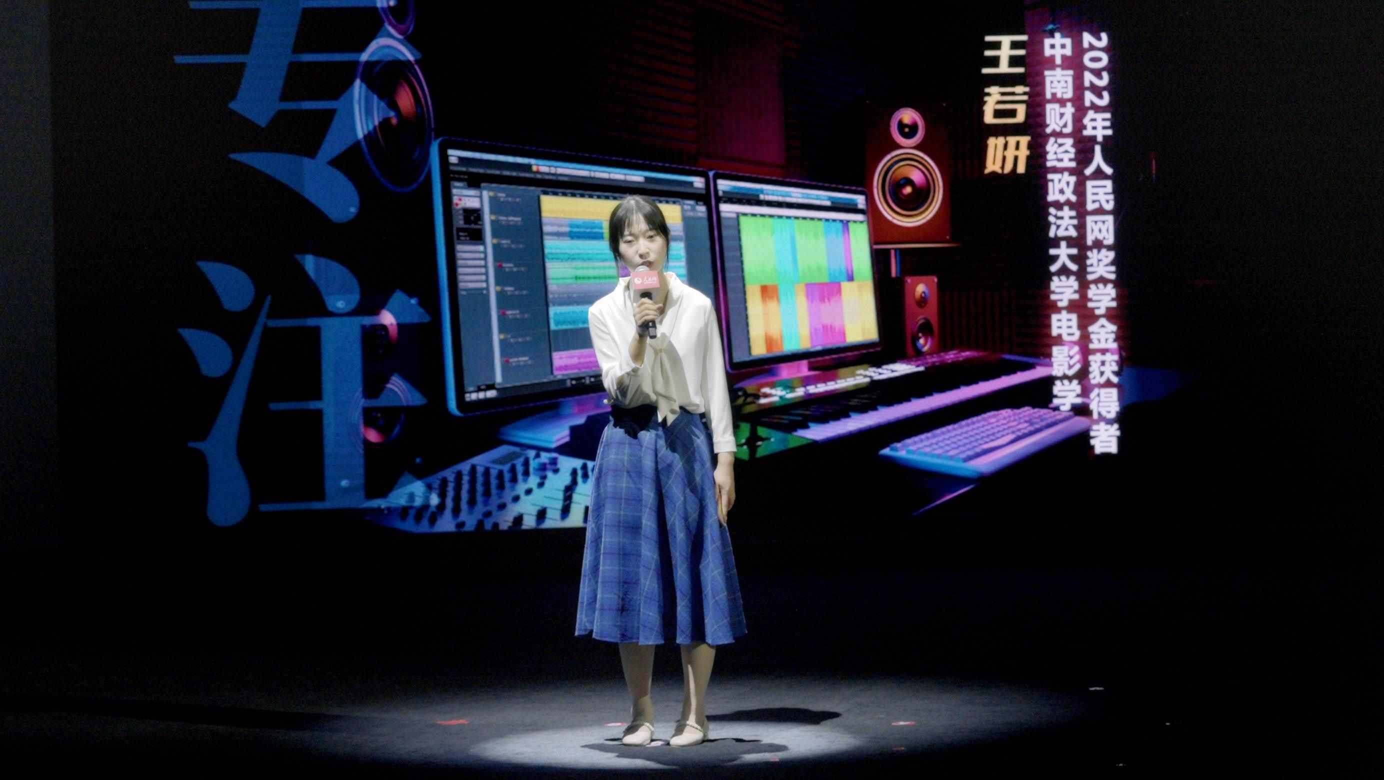 2022年人民網(wǎng)獎學(xué)金獲得者、中南財經(jīng)政法大學(xué)電影學(xué)專業(yè)學(xué)生王若妍分享自己的故事。實習(xí)生韓華良 攝
