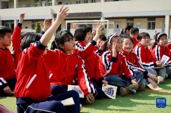3月31日,徐州市漢橋小學(xué)的學(xué)生在鐵路安全知識(shí)講解中舉手回答互動(dòng)問題。
