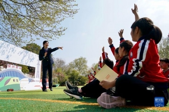 3月31日,中國(guó)鐵路上海局集團(tuán)有限公司徐州站的青年志愿者在徐州市漢橋小學(xué)為學(xué)生們講解鐵路安全知識(shí)。