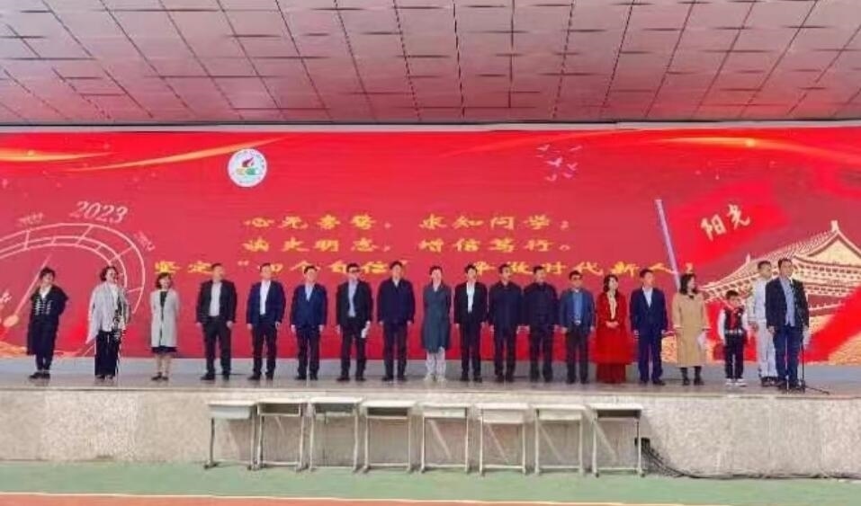 當(dāng)天上午,銅川市耀州區(qū)教育代表團(tuán)一行在北京市八一學(xué)校校長(zhǎng)沈軍、黨委書記牛震云等校領(lǐng)導(dǎo)陪同下,參加北京市八一學(xué)校舉行的周一升旗儀式,3000余名師生參加儀式。升旗儀式上,照金北梁紅軍小學(xué)學(xué)生代表和北京市八一學(xué)校學(xué)生代表分別朗誦了習(xí)近平總書記給照金北梁紅軍小學(xué)學(xué)生的回信和給北京市八一學(xué)??破招⌒l(wèi)星研制團(tuán)隊(duì)學(xué)生的回信。耀州中學(xué)、照金紅軍小學(xué)和照金北梁紅軍小學(xué)等5所被幫扶學(xué)校的同學(xué)們,還通過視頻方式向北京市八一學(xué)校的師生們表達(dá)了謝意并送上祝福。中宣部駐耀州掛職干部、銅川市耀州區(qū)委副書記孫進(jìn)軍在升旗儀式上介紹了銅川市耀州區(qū)的紅色歷史、人文資源和自然風(fēng)光,并邀請(qǐng)師生們走進(jìn)耀州、了解耀州、宣傳耀州,祝愿兩地學(xué)生攜手并進(jìn)、學(xué)業(yè)有成。