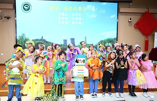 此外,九中教育集團所屬的首鋼幼教金頂街園等幼兒園的孩子們上演了精彩的“幼兒生態(tài)保護時裝秀”。他們身穿利用生活廢棄物品精心制作成各種造型的服裝,巧妙傳遞出了“變廢為寶”的環(huán)保理念。歌謠表演《綠色石景山》也為孩子們上了一堂生動的爭做環(huán)保小衛(wèi)士、友愛相伴小動物的課程。