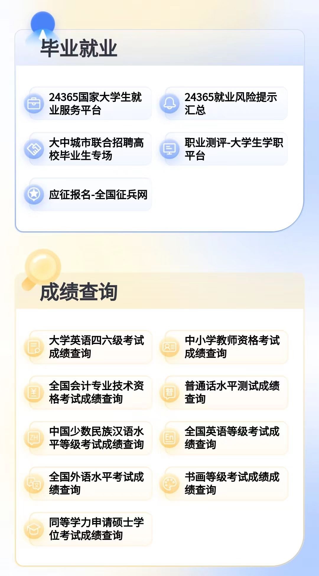 細(xì)分到大學(xué)生群體,“人民網(wǎng)+”客戶端便民服務(wù)匯總小程序提供在校期間多種國(guó)家考試成績(jī)的查詢服務(wù),并為大學(xué)生群體提供畢業(yè)就業(yè)資訊及服務(wù),實(shí)現(xiàn)從入學(xué)到就業(yè)“服務(wù)閉環(huán)”: