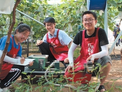 人才培養(yǎng)在遼寧省營(yíng)口市鲅魚圈區(qū)葡萄科技小院,沈陽(yáng)農(nóng)業(yè)大學(xué)師生在田間進(jìn)行指標(biāo)測(cè)定。邢若男攝(人民視覺(jué))