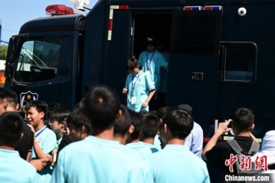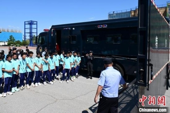 由北京市公安局支教民警組建并執(zhí)教的貴州黔西南州青少年校園足球男、女隊(duì)員共34人來(lái)到北京參加夏令營(yíng)活動(dòng)。今天,隊(duì)員們觀看特警訓(xùn)練及警犬演示,現(xiàn)場(chǎng)體驗(yàn)警械武器和警車等裝備使用,感受首都公安風(fēng)采。