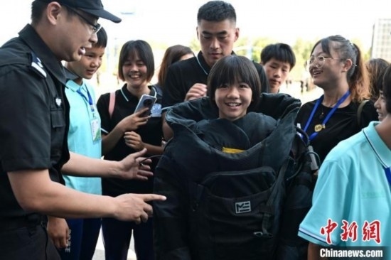 7月9日,隊(duì)員們觀看特警訓(xùn)練及警犬演示,現(xiàn)場(chǎng)體驗(yàn)警械武器和警車等裝備使用,民警講解安全防范知識(shí)。