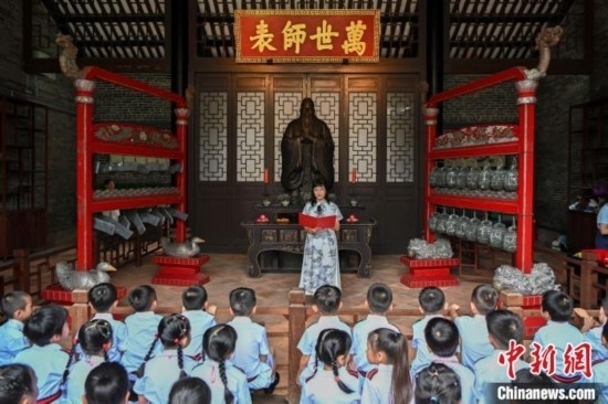 當(dāng)天參與開學(xué)禮的是該校第五屆港澳子弟班的學(xué)生??缀缭趯W(xué)子首課環(huán)節(jié)向一年級新生們重點(diǎn)講述文化自信的重要性,并稱:“開筆禮是對傳統(tǒng)文化的傳承和繼承,也是學(xué)生邁開學(xué)習(xí)第一步的重要儀式?!?/p>