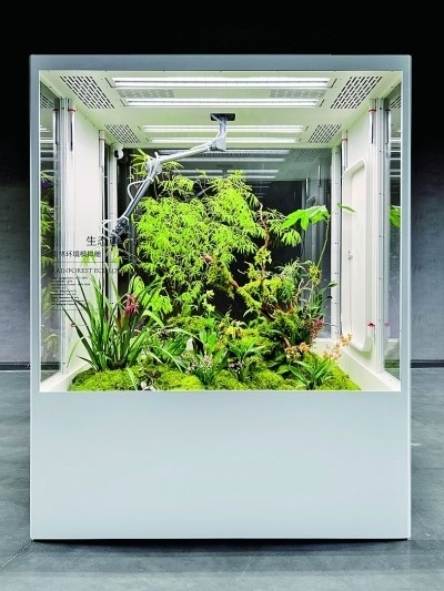 展廳一側(cè),三個(gè)立方體環(huán)境模擬艙并排放置,分別在近7立方米的空間內(nèi)模擬了雨林、海島、沙漠三種生態(tài)環(huán)境,引來(lái)許多觀眾圍觀?!霸诟邩橇至⒌亩际校芏嗳硕枷蛲鶕碛幸环綄儆谧约旱淖匀惶斓?。為人們?cè)谑覂?nèi)打造一片‘原始森林’便成了我們的使命?!逼放苿?chuàng)始人李軍介紹,設(shè)計(jì)過(guò)程中,團(tuán)隊(duì)遇到的一大的難點(diǎn)就是在保證室內(nèi)環(huán)境舒適度的同時(shí),讓各類(lèi)植物健康生長(zhǎng)。“通過(guò)設(shè)計(jì)師的努力,我們首次將人造太陽(yáng)光源、溫濕度控制、空氣流通、智能微噴等系統(tǒng)整合于室內(nèi)種植模擬環(huán)境中,實(shí)現(xiàn)了室內(nèi)種植智能化、自動(dòng)化、現(xiàn)代化?!崩钴姳硎荆鲈O(shè)計(jì)亦要遵循自然法則,“人與自然和諧共生”是團(tuán)隊(duì)始終不變的設(shè)計(jì)宗旨。