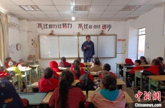 除了教語(yǔ)文,宮宇洋還教體育。他把滿是碎石的學(xué)校老操場(chǎng)一點(diǎn)點(diǎn)收拾干凈,打造出一塊籃球場(chǎng),并畫(huà)出幾條跑道。做游戲、打籃球、開(kāi)運(yùn)動(dòng)會(huì)……新操場(chǎng)得到了充分利用,放學(xué)后師生們還坐在一起數(shù)星星。
