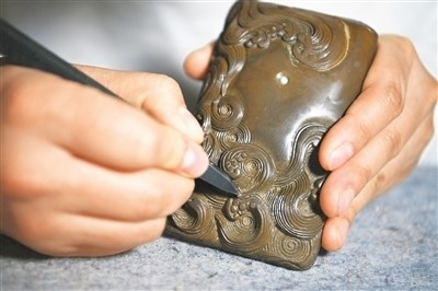 藺霄鱗對澄泥硯進行完善。照片均由新華社記者 楊晨光攝