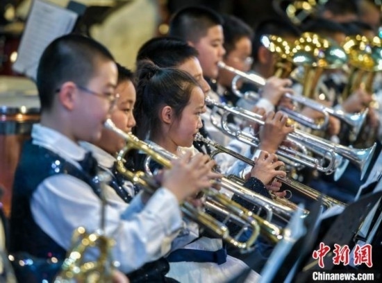 12月27日,新疆烏魯木齊市沙依巴克區(qū)教育系統(tǒng)“龍行龘龘 樂動童年”2024年交響管樂新年音樂會在該市青少年宮舉辦,來自烏魯木齊市第27小學(xué)的交響管樂團演奏了《紅旗頌》、《茉莉花》等經(jīng)典曲目,并與絲路名師合唱團合作演出《青春之舞》、《最炫民族風(fēng)》等曲目。據(jù)介紹,該交響管樂團成立于2014年,規(guī)模從最初的40余人發(fā)展到現(xiàn)今近70人,團員平均年齡10歲。
