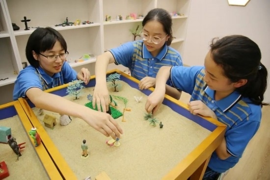 2023年5月30日,在湖北省十堰市鄖陽區(qū)一中,高三學(xué)生在學(xué)校的沙盤室內(nèi)通過擺放物件釋放壓力。通訊員 曹忠宏 宋紅梅 攝