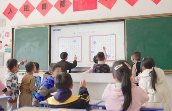 2023年12月20日,在云南省昭通市魯?shù)榭h卯家灣小學(xué),學(xué)生們通過智能雙師課堂,進(jìn)行《注意力專項(xiàng)訓(xùn)練》課程的大屏互動。通訊員 鄭敬亭 攝