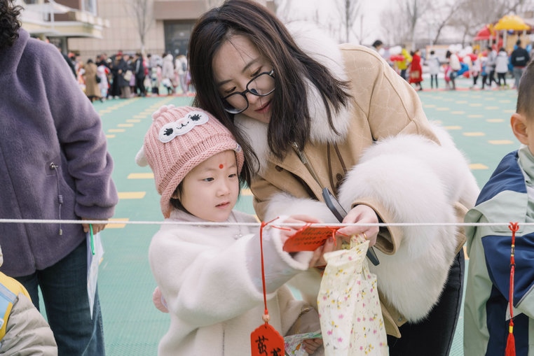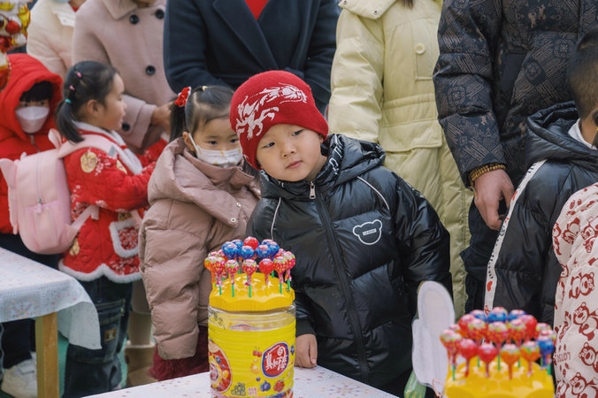 為歡迎小朋友回家,幼兒園精心布置,鯉魚跳龍門、福氣上上簽、朱砂啟智、擊鼓明智等。