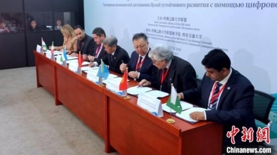 活動(dòng)現(xiàn)場(chǎng),西安交通大學(xué)、哈薩克斯坦國(guó)立大學(xué)、伊朗科技大學(xué)、塔什干信息技術(shù)大學(xué)、吉爾吉斯國(guó)際大學(xué)、巴基斯坦國(guó)立科技大學(xué)、塔吉克斯坦國(guó)立大學(xué)共同簽署“絲綢之路大學(xué)聯(lián)盟”內(nèi)上海合作組織成員國(guó)《高等教育合作協(xié)議》。在該合作協(xié)議框架下,各方達(dá)成首個(gè)學(xué)分互認(rèn)項(xiàng)目的共識(shí),即共同建設(shè)絲綢之路大學(xué)聯(lián)盟“可持續(xù)發(fā)展目標(biāo)實(shí)現(xiàn)路徑在線課程”。