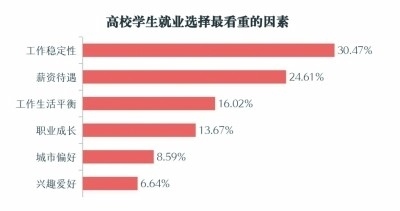 對我國東、中、西部地區(qū)7個省區(qū)市的14所本科院校、4所??圃盒#采w研究生、本科生、專科生三類群體,隨機抽樣的1829份調(diào)查問卷顯示,除工作穩(wěn)定性、薪資待遇外,工作生活平衡、職業(yè)成長、所在城市、興趣愛好等,也是高校學(xué)生就業(yè)選擇時看重的因素。