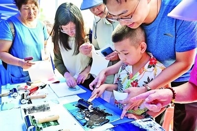 4月24日是“中國(guó)航天日”,海南文昌舉辦“氣象航天手牽手”系列科普活動(dòng),用各種趣味實(shí)驗(yàn)和游戲讓觀眾了解航天知識(shí)。圖為小朋友和家長(zhǎng)在文昌航天科普中心制作航天主題版畫。新華社記者 郭程攝