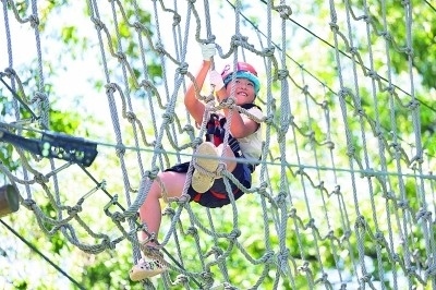 孩子在江蘇南京一家探險(xiǎn)樂園體驗(yàn)“樹上探險(xiǎn)”活動。新華社發(fā)
