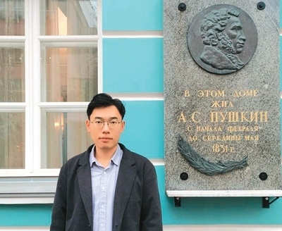 “天道酬勤”“海內(nèi)存知己,天涯若比鄰”。在莫斯科國立大學(xué)的一些辦公室里,我看見墻上掛著中文書法作品。在自習(xí)室里,我也能看到正在學(xué)習(xí)中文的俄羅斯同學(xué)。一些俄羅斯同學(xué)看到中國同學(xué)后,會主動走過來打招呼,他們用自己學(xué)的中文聊天。我認(rèn)為俄羅斯同學(xué)練習(xí)口語的勇氣很值得學(xué)習(xí)。