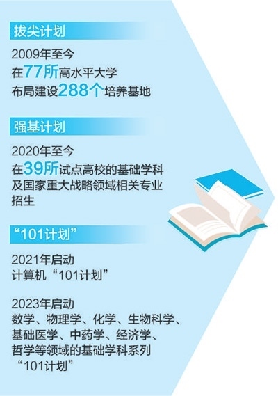 高東鋒:教育部依托高水平大學(xué)累計(jì)建設(shè)288個(gè)基礎(chǔ)學(xué)科拔尖學(xué)生培養(yǎng)基地,強(qiáng)化有組織拔尖創(chuàng)新人才培養(yǎng),在計(jì)算機(jī)科學(xué)、數(shù)學(xué)、基礎(chǔ)醫(yī)學(xué)、經(jīng)濟(jì)學(xué)等9個(gè)領(lǐng)域?qū)嵤?01計(jì)劃”,建設(shè)核心課程、教材、師資團(tuán)隊(duì)和實(shí)踐項(xiàng)目。基礎(chǔ)學(xué)科拔尖學(xué)生培養(yǎng)計(jì)劃實(shí)施高校建設(shè)了一批榮譽(yù)學(xué)院、書(shū)院等“育人試驗(yàn)區(qū)”,逐漸形成了“選拔設(shè)通道、培養(yǎng)留空間、評(píng)價(jià)長(zhǎng)周期、協(xié)同聚合力”的有效模式。
