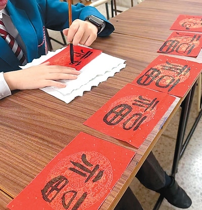 在馬耳他的一些校園中,春節(jié)的氛圍同樣濃厚。圣瑪格麗特中學(xué)“中國角”的師生們手握毛筆,全神貫注地書寫著春聯(lián)和福字;在馬耳他中文學(xué)校,學(xué)生們在孔院老師的指導(dǎo)下,手指翻飛間,將紅紙化作一幅幅妙趣橫生的剪紙作品。