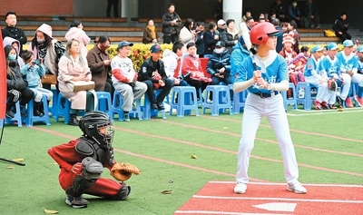 兩岸青少年在福州市錢塘文博小學(xué)開展棒壘球競技交流。