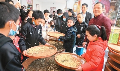 在福州教育學(xué)院附屬第二小學(xué),臺(tái)灣青少年近距離領(lǐng)略中華傳統(tǒng)文化的獨(dú)特魅力。書法藝術(shù)的雅致、篆刻技藝的精妙、掐絲琺瑯的華麗、金箔畫書簽的韻味……每一項(xiàng)體驗(yàn)都給臺(tái)灣青少年留下深刻印象。福州茉莉花茶傳統(tǒng)窨制工藝傳承人張子健現(xiàn)場展示了茉莉花茶制作技藝,不少臺(tái)灣青少年興趣盎然地跟著學(xué)習(xí)。兩岸青少年還攜手種下“連心樹”,期盼友誼之樹茁壯成長,未來見證彼此情誼的延續(xù)與發(fā)展。