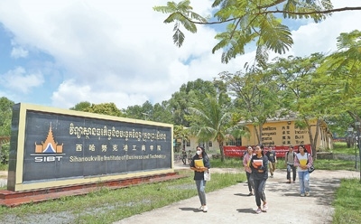 西哈努克港工商學院由柬埔寨西港特區(qū)公司聯(lián)合中國無錫商業(yè)職業(yè)技術(shù)學院共同創(chuàng)辦,是柬埔寨首個中文大學。圖為學生們行走在校園。