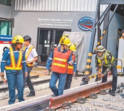 泰國春武里技術(shù)學院與中國多所鐵道學院保持技術(shù)交流。圖為軌道專業(yè)的學生們進行實操訓練。