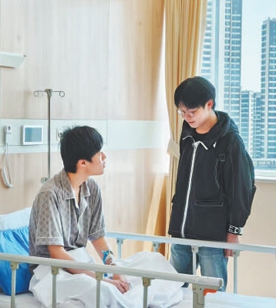 姜昭鵬(右)在探望同學(xué)。