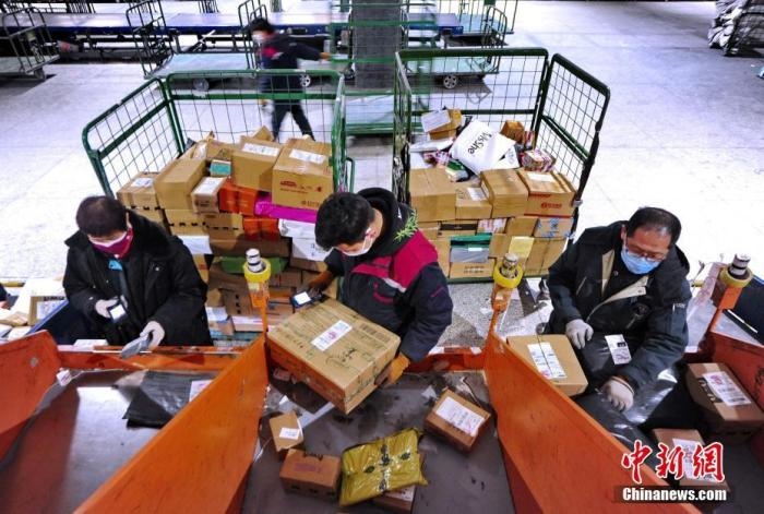 資料圖:工作人員分撿郵件。中新社記者 劉新 攝