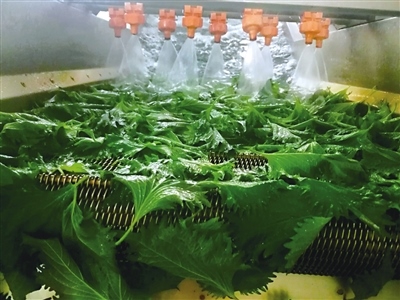 在紫蘇基地加工車間,20多名工人正在熱火朝天地忙碌著,采摘好的紫蘇葉在這里經(jīng)過(guò)清洗、精選、包裝等多道工序處理后,會(huì)按照不同品級(jí)進(jìn)行精細(xì)化捆扎分類,然后被送入冷庫(kù)進(jìn)行預(yù)冷,整個(gè)操作都是在無(wú)菌環(huán)境下進(jìn)行?!艾F(xiàn)在臨時(shí)工、長(zhǎng)期工加一起有20多人,5年來(lái),我們?cè)谄咣倥_(tái)村、什不斜氣村、什拉烏素村等周邊培訓(xùn)了村民200人左右,他們每年農(nóng)閑時(shí)就會(huì)來(lái)基地打工,男工負(fù)責(zé)大棚管理、種植,女工負(fù)責(zé)采葉子、分葉子、包葉子。”包迎春向記者介紹道。
