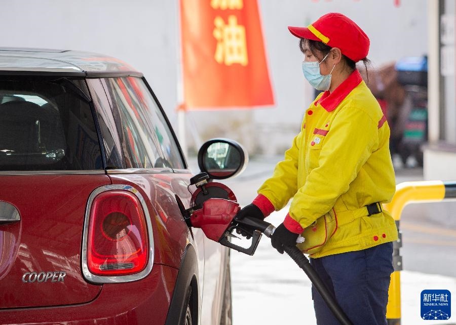 3月3日,江蘇南京一加油站的工作人員給車輛加油。新華社發(fā)( 蘇陽 攝)
